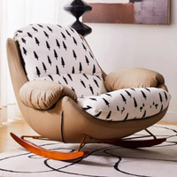 Retro Bedrukte Stof Schommelstoel Met Leren Accenten