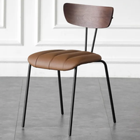 เก้าอี้เน้นหนังสไตล์โมเดิร์นพร้อมหลังไม้และกรอบโลหะสีดำ